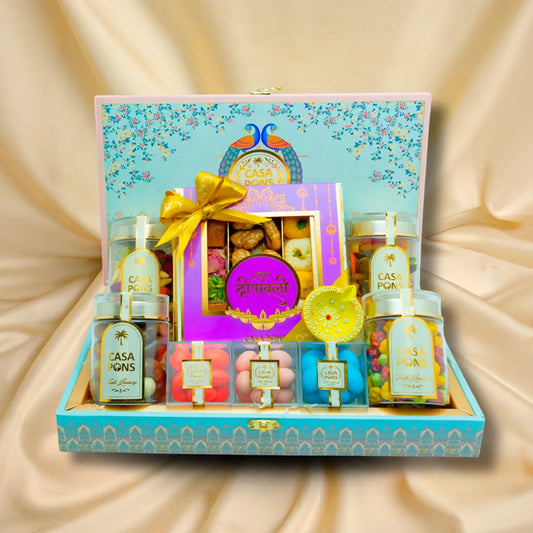 فيل أزرق فاتح فيروزي | صندوق هدايا ديوالي مع حلويات وشوكولاتة