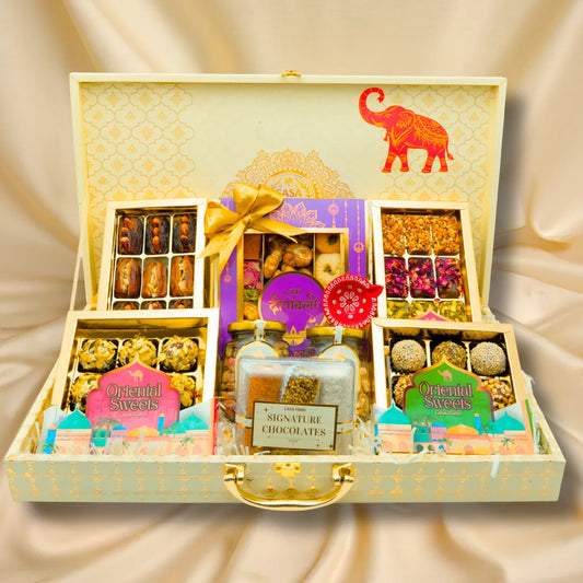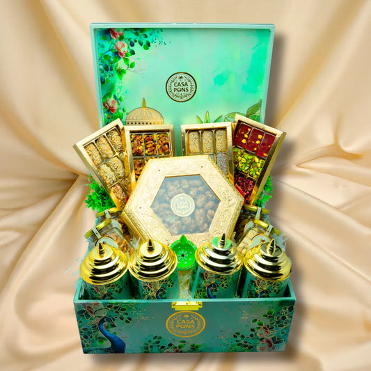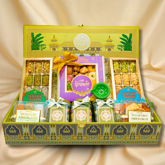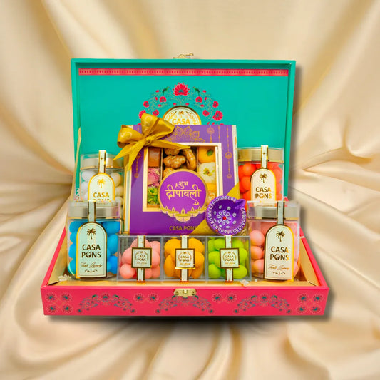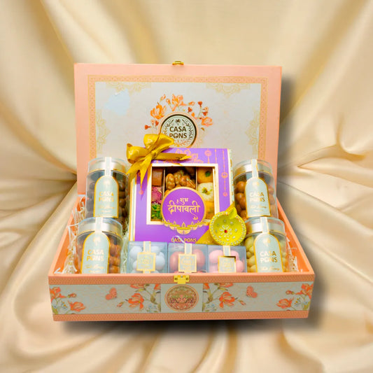 أضفِ البهجة إلى مهرجان الأضواء مع سلال هدايا ديوالي من كازا بونس، المليئة بسخاء بالشوكولاتة الفاخرة، والمكسرات الفاخرة، والتمر المحشو، والبقلاوة، والحلويات الحرفية . كل سلة مُرتبة بشكل جميل لتقديمها في احتفالات مميزة، ما يجعلها الهدية المثالية للمنازل، والمكاتب، وحفلات الزفاف، أو الاحتفالات الكبيرة .