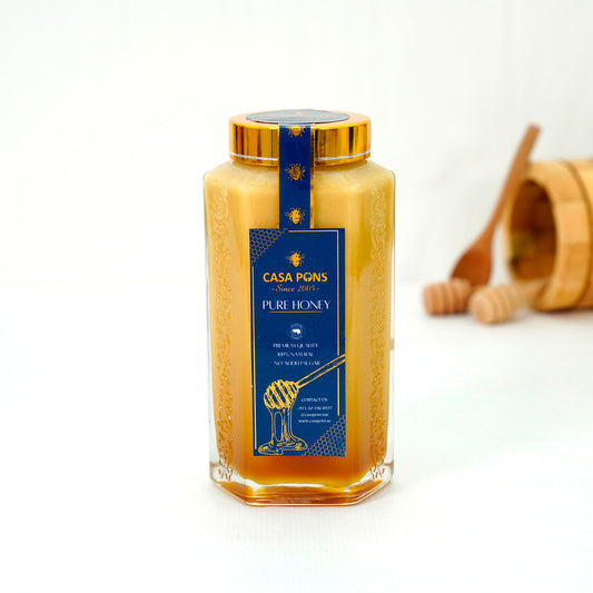 العسل الفاخر مُحلي طبيعي عالي الجودة، مصنوع من أجود أنواع رحيق النحل، محتفظًا بنكهته الغنية ولونه الذهبي وقيمته الغذائية من خلال معالجة بسيطة. غني بمضادات الأكسدة والإنزيمات والسكريات الطبيعية، وهو خيار فاخر ومتعدد الاستخدامات للاستخدامات في الطهي والعلاج والعناية بالبشرة، ويوفر بديلاً صحيًا للسكر المكرر.