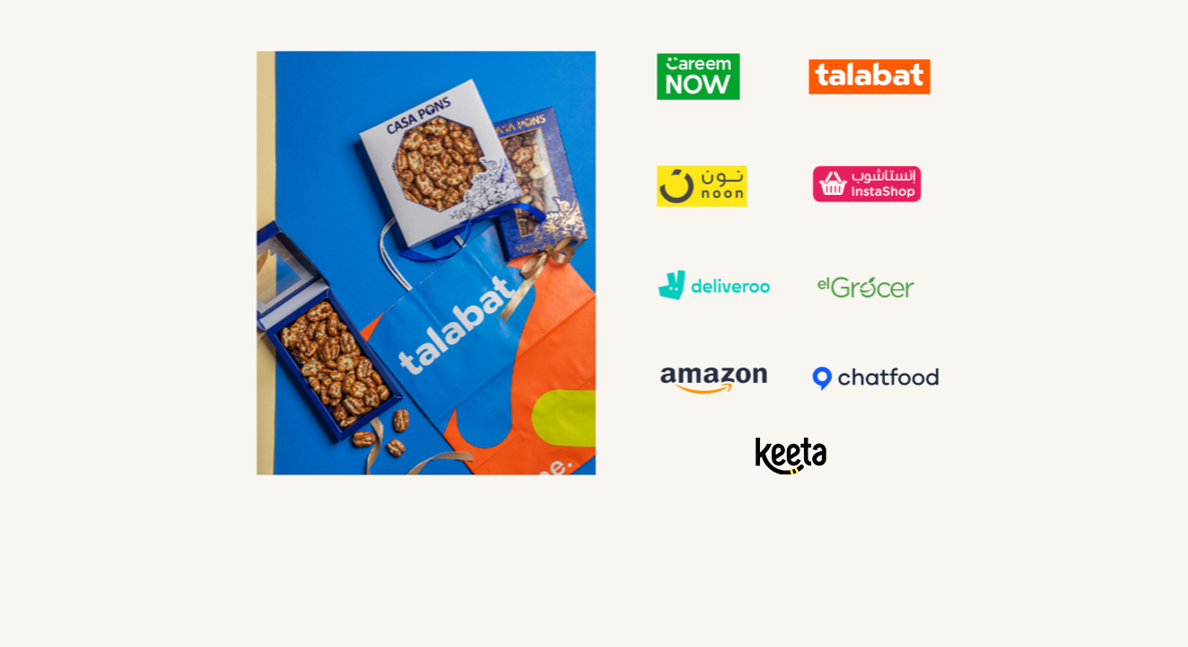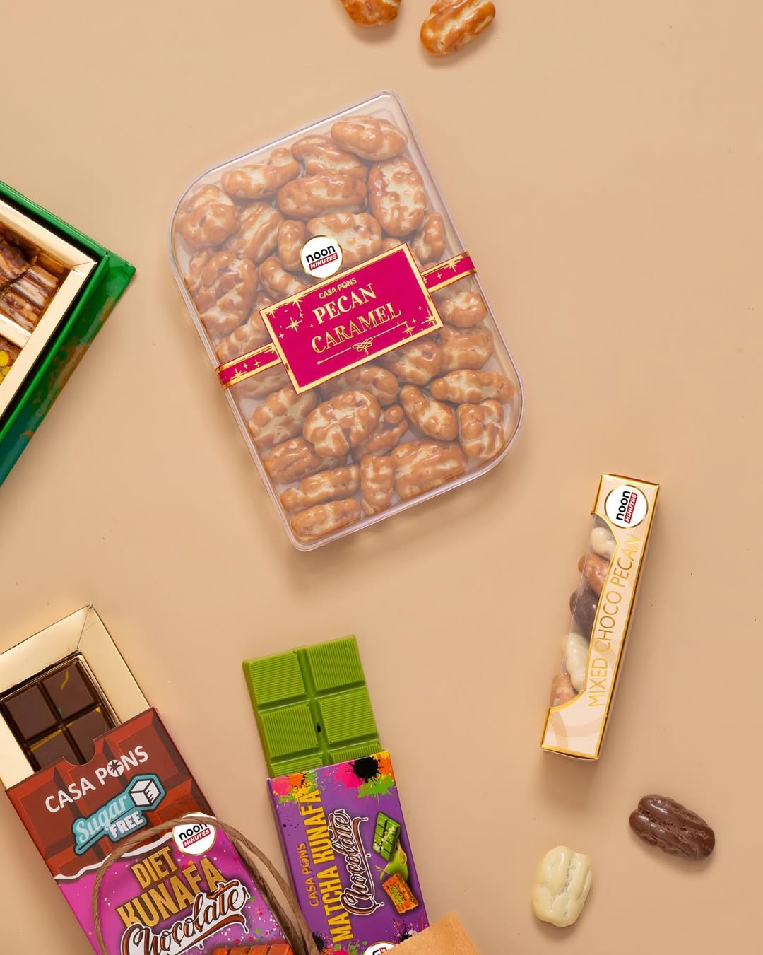 From caramelized pecans to handcrafted chocolates and elegant gift boxes, Casa Pons is now easier to find than ever. Whether it’s a thoughtful gift or a moment of indulgence, enjoy our signature taste and craftsmanship through Noon’s convenient delivery service.We’re also on Noon – the same Casa Pons quality you love, now a tap away.