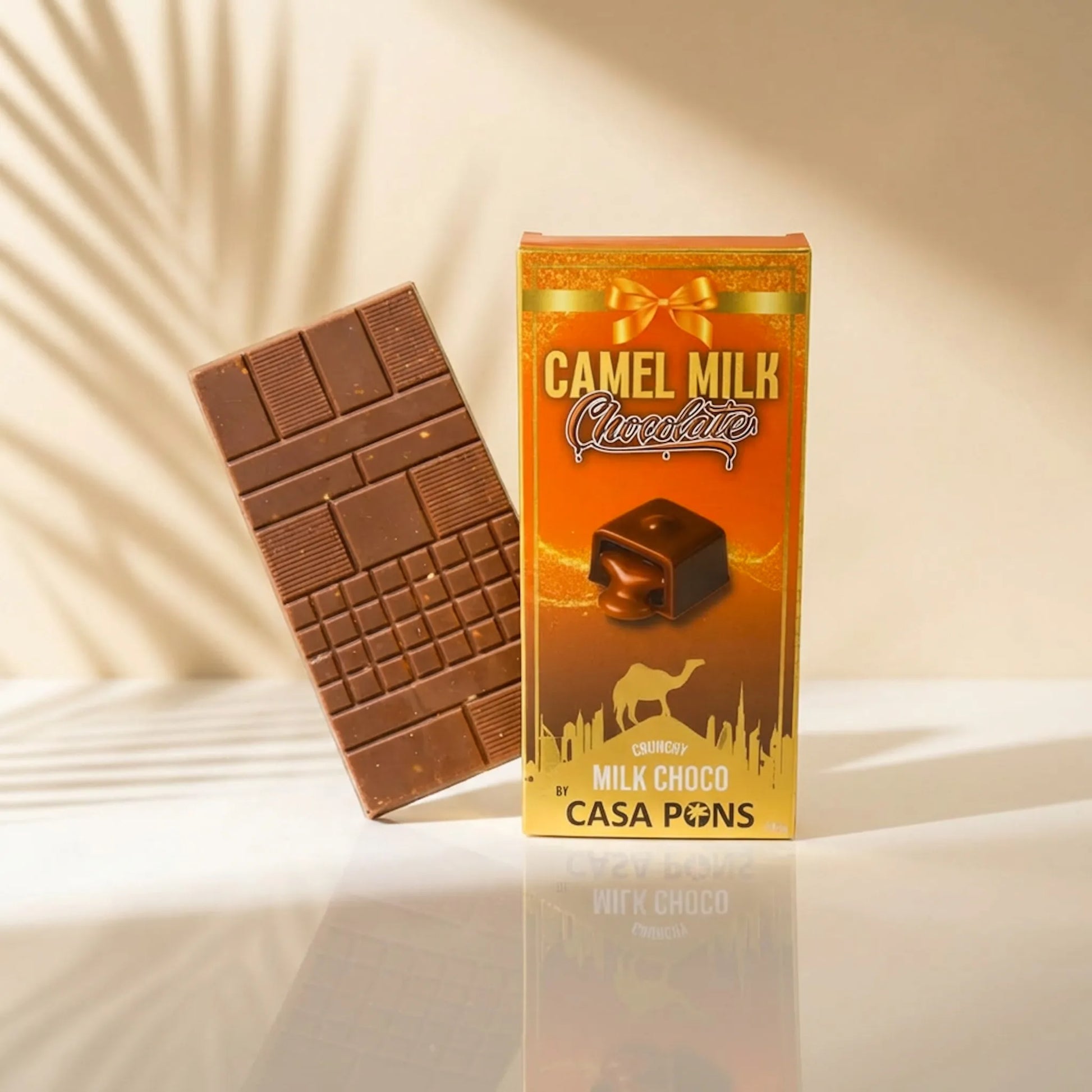 شوكولاتة حليب الإبل النقية بقوام كريمي · ذوبان ناعم فاخر وحلاوة متوازنة · لوح شوكولاتة فاخر 40 غرام · مثالية للاستمتاع الشخصي أو كهدية أنيقة