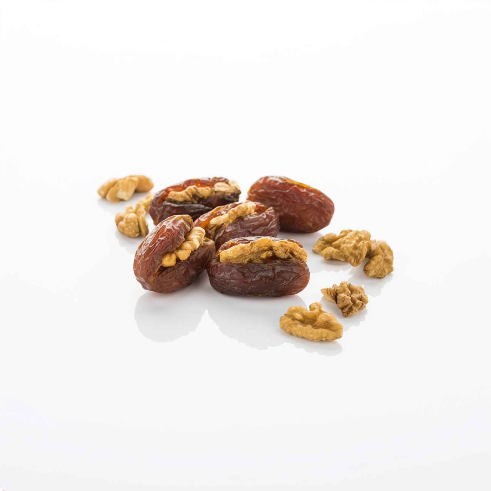استمتع بمزيج مثالي من التمر الطري الحلو طبيعيًا والجوز المقرمش في كل لقمة. يجمع تمرنا بالجوز بين غنى التمر الشرق أوسطي الصحي ونكهة الجوز الترابية، ليُقدم لك وجبة خفيفة مغذية ولذيذة .