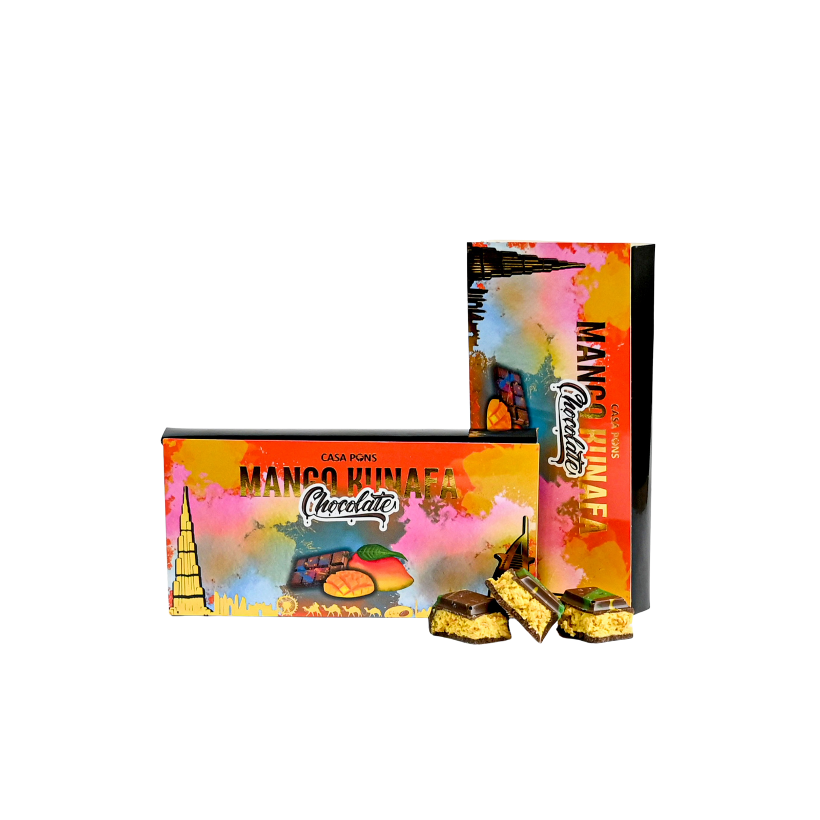 استمتع بمزيج فريد من الكنافة التقليدية، والشوكولاتة الناعمة، ولمسة من المانجو اللذيذة في هذا البار. مثالي كحلوى، أو كهدية، أو لتذوّق نكهات دبي الغنية.