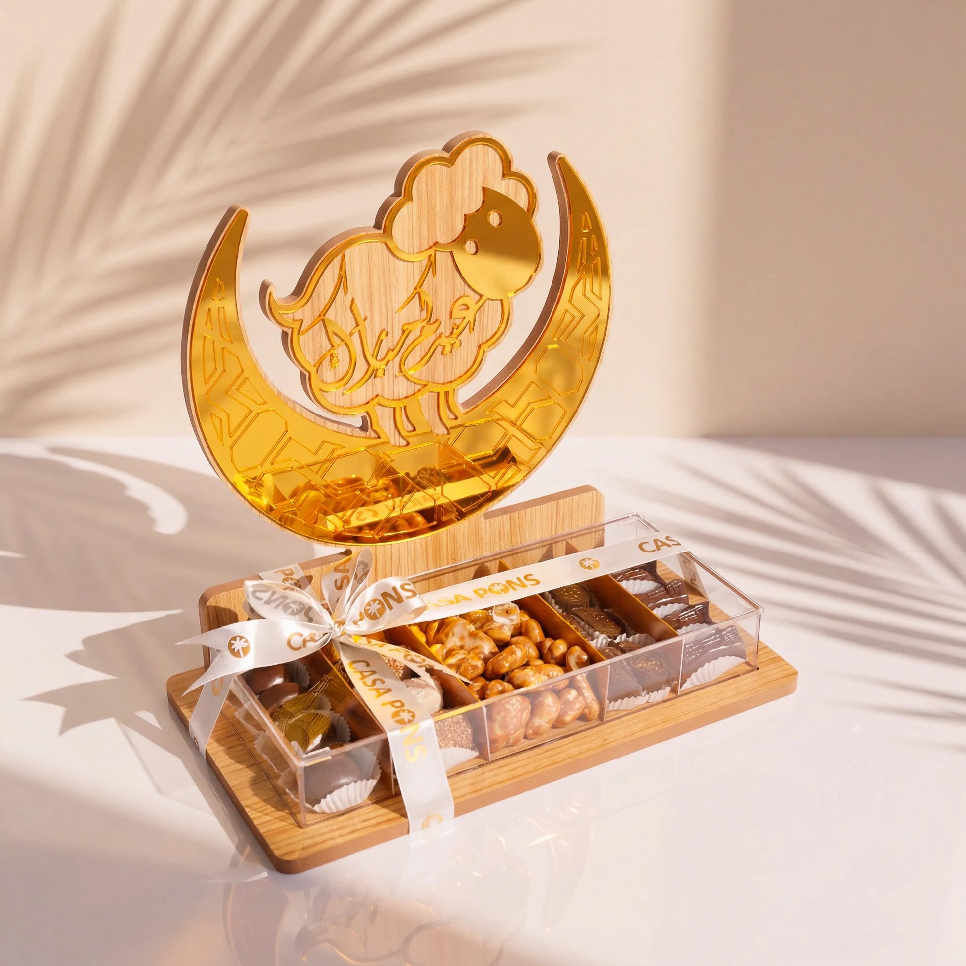 صينية خروف ذهبية فاخرة، هدية احتفالية مثالية لتشاركها مع أحبائك خلال عيد الفطر. تتضمن: