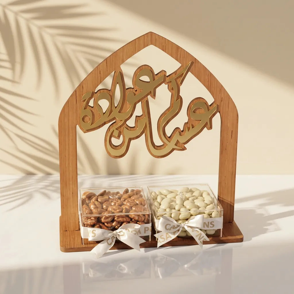 ✅ حامل خشبي كبير مطلي بالذهب مع تهنئة بالعيد