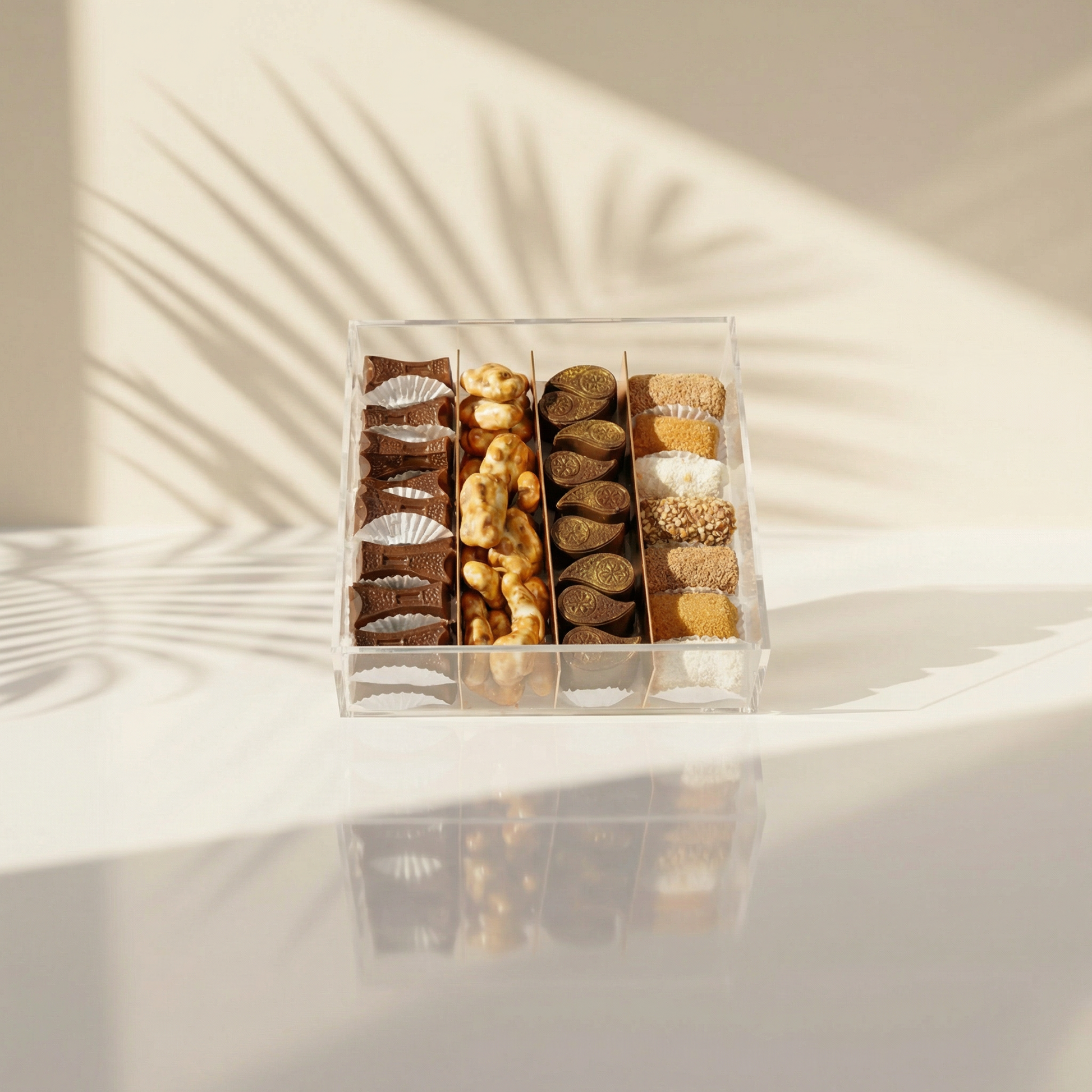 شوكولاتة الحاج مبارك الخاصة، صندوق فاخر يحتوي على تشكيلة رائعة من: