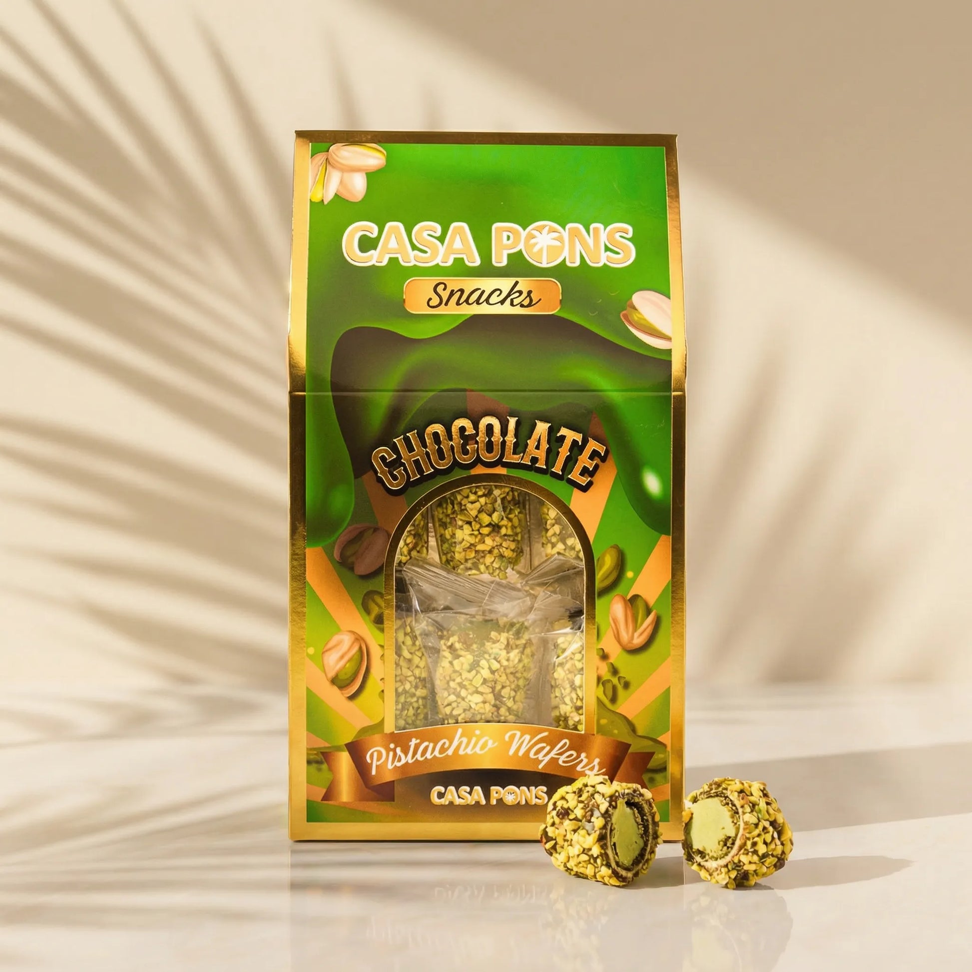 يقدم ويفر الفستق (140 غرامًا) من كازا سناكس مزيجًا متوازنًا من حشوة الفستق الكريمية والويفر الذهبي المقرمش المغطى بالشوكولاتة الفاخرة. كل قضمة تمنحك نكهة جوزية غنية، خفيفة ولذيذة في آنٍ واحد. مثالي لاستراحات القهوة والتجمعات أو الاستمتاع به في المنزل، فهو يجمع بين مكونات فاخرة ونضارة تدوم طويلًا. معبأ في علبة كازا بونس الأنيقة باللونين الأخضر والذهبي، ليضفي لمسة من الرقي على كل لحظة من وجباتك الخفيفة.