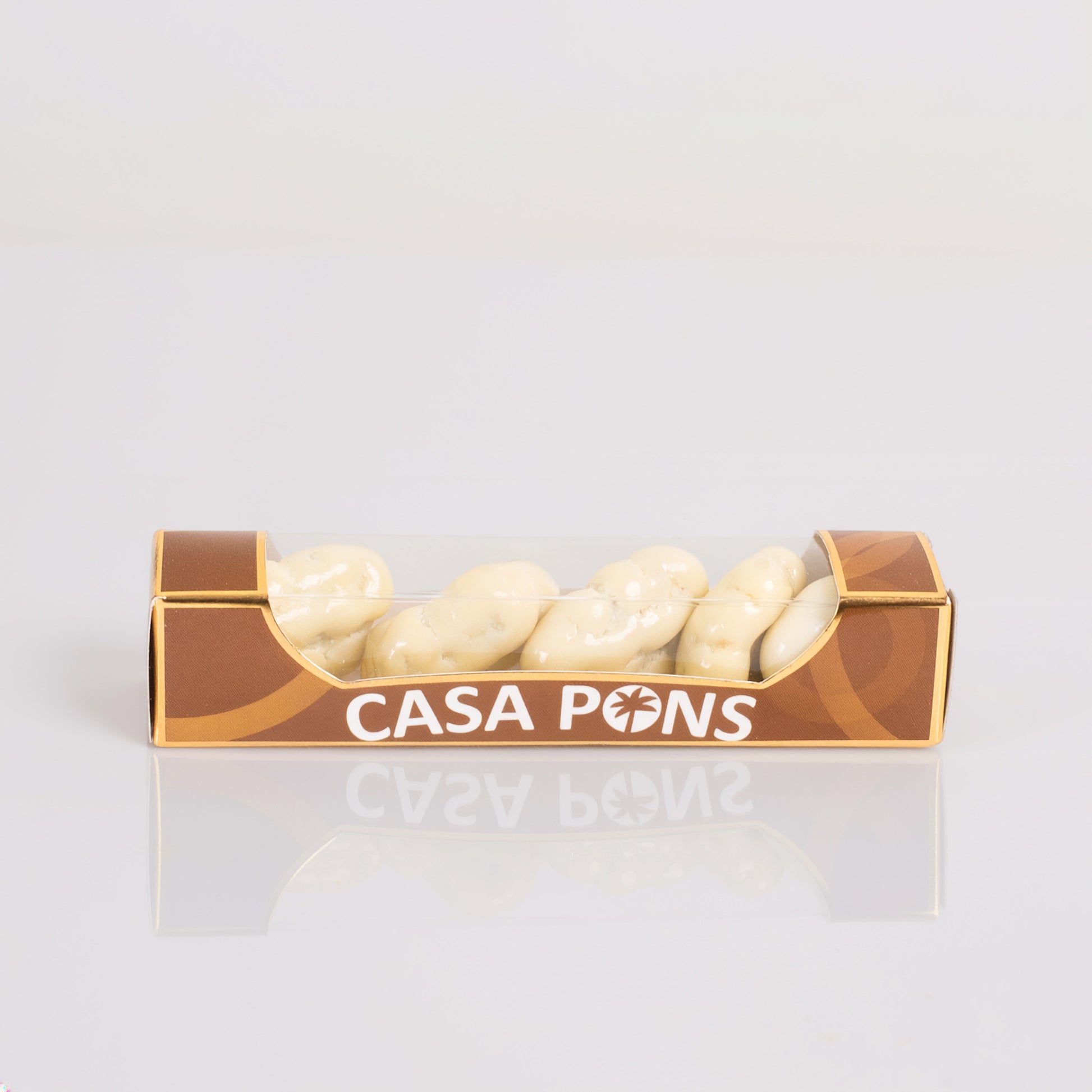 Baby Pecan White Chocolate is a refined mini box filled with premium pecans coated in smooth, velvety white chocolate. Presented in Casa Pons’ elegant cream-and-gold packaging, this 30 g treat delivers a delicate sweetness and a luxurious crunch, making it the perfect small indulgence for any occasion.