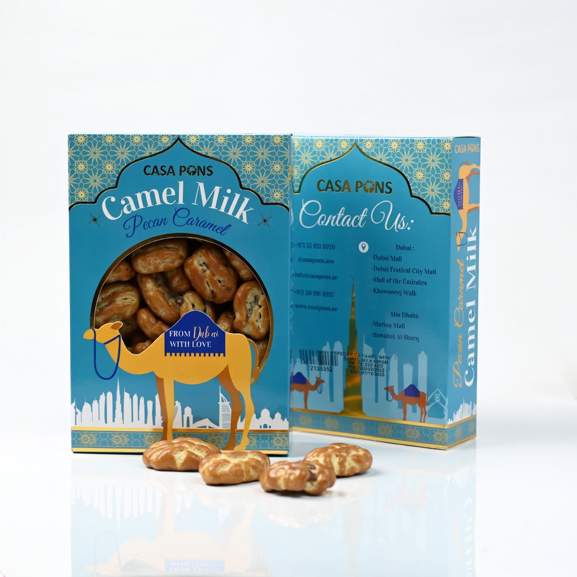 The Dubai Pecan Souvenir – Camel Milk (400 g) by Casa Pons is a refined Dubai-themed gift designed for travelers, visitors, and professionals who appreciate elegance and authenticity. Presented in a beautifully crafted souvenir box, it represents the city’s luxurious taste and cultural charm. Perfect to take abroad as a memorable token, offer to family and friends, or share with international clients, this box captures the essence of Dubai’s modern sophistication and warm hospitality.